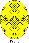 kistka, on both sides of the egg. When you have double-checked your lines, dip the egg in the Yellow dye. Leave it in about 15 minutes, or until the desired shade is reached (REMEMBER: NO LONGER THAN 45 MINUTES!). Then gently remove it, and dab it dry. |
