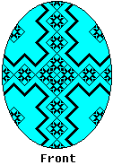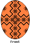 kistka, on both sides of the egg. When you have double-checked your lines, dip the egg in the Orange dye. You may want to dip it in the Orange wash first, to rinse off the blue dye. (If you use the wash, leave it in about 10 minutes, then remove it, dab it dry, then dip it in the Orange dye). Leave it in about 15 minutes, or until the desired shade is reached. Then gently remove it, and dab it dry. |