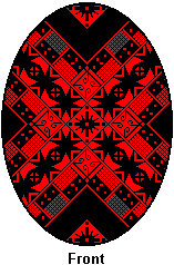kistka, on both sides of the egg. When you have double-checked your lines, dip the egg in the Black dye. Leave it in about 15 minutes, or until the desired shade is reached. Then gently remove it, and dab it dry. Let it sit a few minutes before proceeding, then complete the egg as described in the Finishing Up section. |