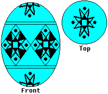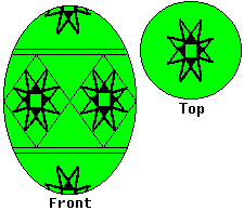 Use the heavy kistka. When you have double-checked your lines, dip the egg in the Orange Wash (if you wish to use it), or in the Orange dye. (If you use the wash, you only need to leave it in for about 10 minutes, then dip it in the Orange Dye). Leave it in about 15 minutes, or until it reaches the desired shade. Then remove it, and dab it dry. |