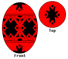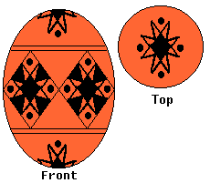 Use the heavy kistka. Once you have applied the wax for this color, double check your lines and dip it in the Black dye. Leave it in for 15 minutes or so, then remove it, and pat it dry. Complete the egg as described in the Finishing Up section. |