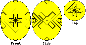 Use the fine kistka. When you have double-checked your lines, dip the egg in the Light Blue dye. Leave it in about 15 minutes, or until the desired shade is reached. Then gently remove it, and dab it dry. |