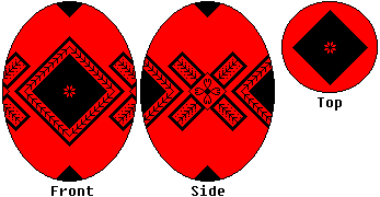 Use the heavy kistka. Be careful applying your lines--it is very difficult to see where the wax is when the shell is black. When you have double-checked your lines, complete the egg as described in the Finishing Up section, paying special attention to the instructions for bleaching your egg. |