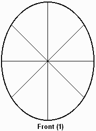 sized parts. Divide each of these sections in half with a 45 degree line, as shown. Now the egg is divided into sixteenths.