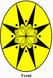 on both sides of the egg. When you have double-checked your lines, dip the egg in the Yellow dye. Leave it in about 15 minutes, or until the desired shade is reached (REMEMBER: NO LONGER THAN 45 MINUTES!). Then gently remove it, and dab it dry. |