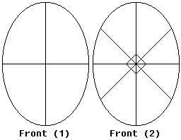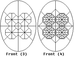 Remember to use light pencil lines, so it won't show up in the final design. Front (1): Divide the egg into eighths. Front (2): Draw the diagonal lines, as shown. Then draw a smallish diamond in the center of the egg. |