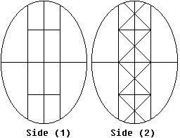 sized sections. Side (2): Draw the diamonds, as shown. Remember to draw your lines on both sides of the egg. When you are satisfied with the appearance of your lines, move ahead to white. |