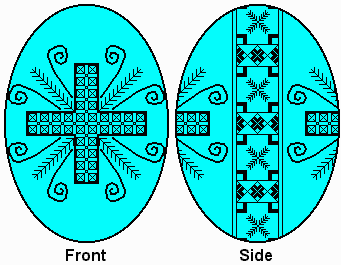 Use the fine and medium kistky, on both sides of the egg. When you have double-checked your lines, dip the egg in the Light Blue dye. Leave it in about 15 minutes, or until the desired shade is reached. Then gently remove it, and dab it dry. |