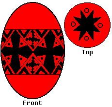 Use the medium or heavy kistka. When you have double-checked your lines, dip the egg in the Bright Red dye. Leave it in about 15 minutes, or until the desired shade is reached. Then gently remove it, and dab it dry. |
